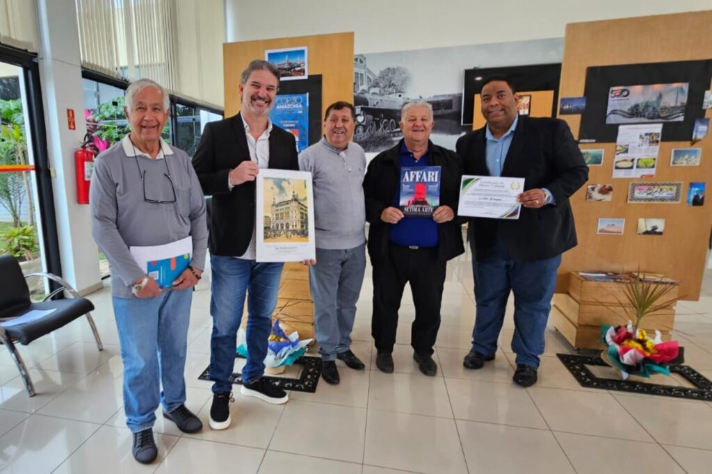 Na oportunidade o curador Hamilton Vieira passou a palavra ao Secretário Hudson Pessini, para prestar singelas homenagens para algumas autoridades, personalidades e imprensa, que marcaram presença na inauguração. Entre elas, o Empresário Valdir Paezani Presidente da Societá Italiana de Sorocaba, Nelson Malzoni Presidente da Academia dos Intelectuais e Escritores do Brasil, Dr Silvio Cesar e Geraldo Fernandes Guimarães representando o Gabinete de Leitura Sorocabano e representando a Editora News estava Matheus Felipe “Max”.