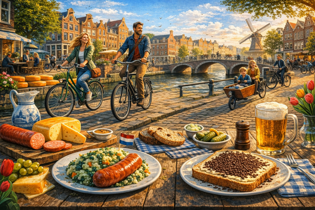 Os holandeses são conhecidos por um estilo de vida prático, progressista e direto. O dia a dia é intensamente influenciado pelo uso da bicicleta — existem mais bikes do que pessoas — e pela rotina ao ar livre.