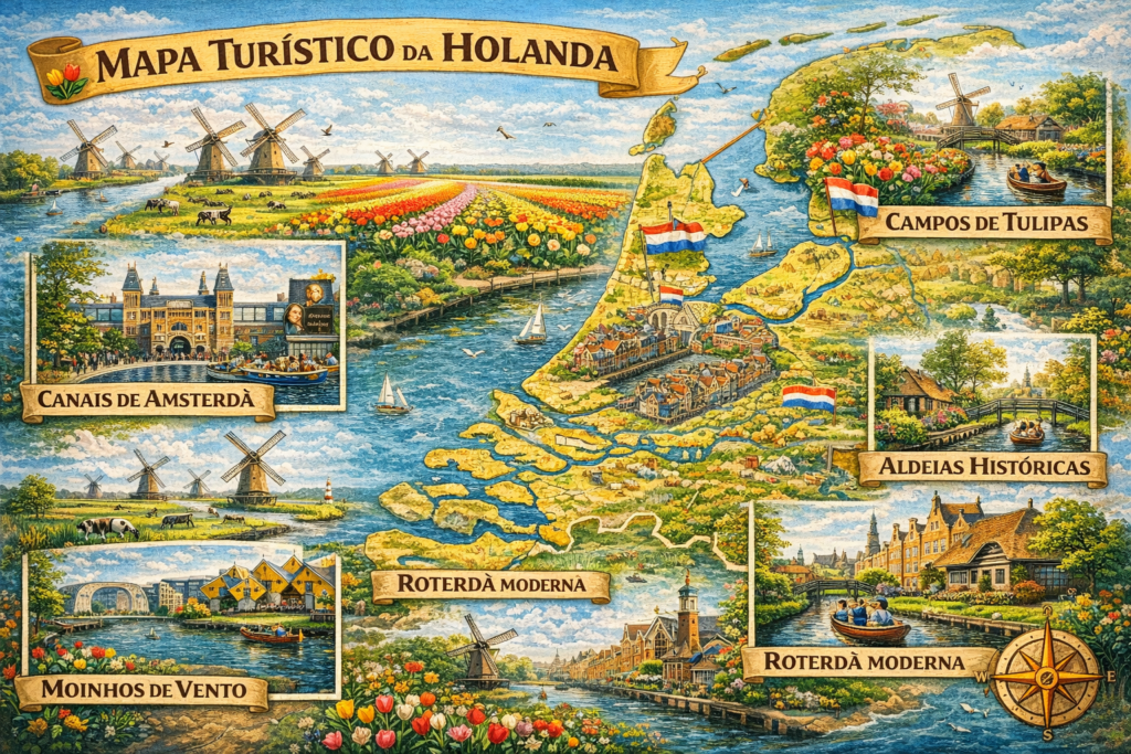 O que atrai os viajantes para a Holanda: O país é um imã turístico por sua combinação única de história, arquitetura e paisagens de tirar o fôlego. Os principais atrativos incluem: